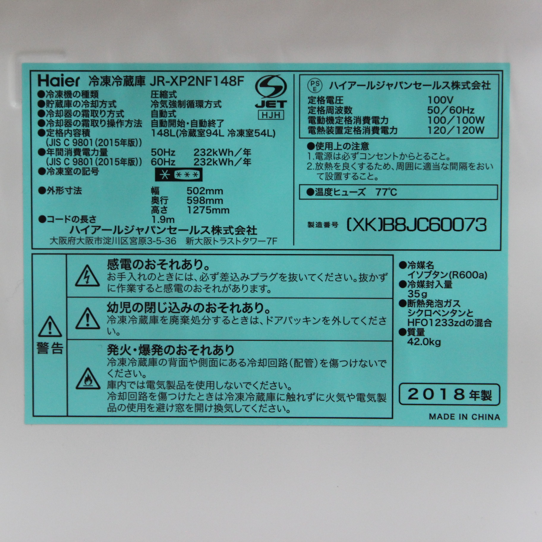 ![ハイアール JR-XP2NF148F-XK 冷蔵庫 URBAN CAFE SERIES ステンレスブラック [2ドア /右開きタイプ /148L] 【ビックカメラグループ独占販売】](https://image.sofmap.com/images/product/large/4562117087511.jpg)
