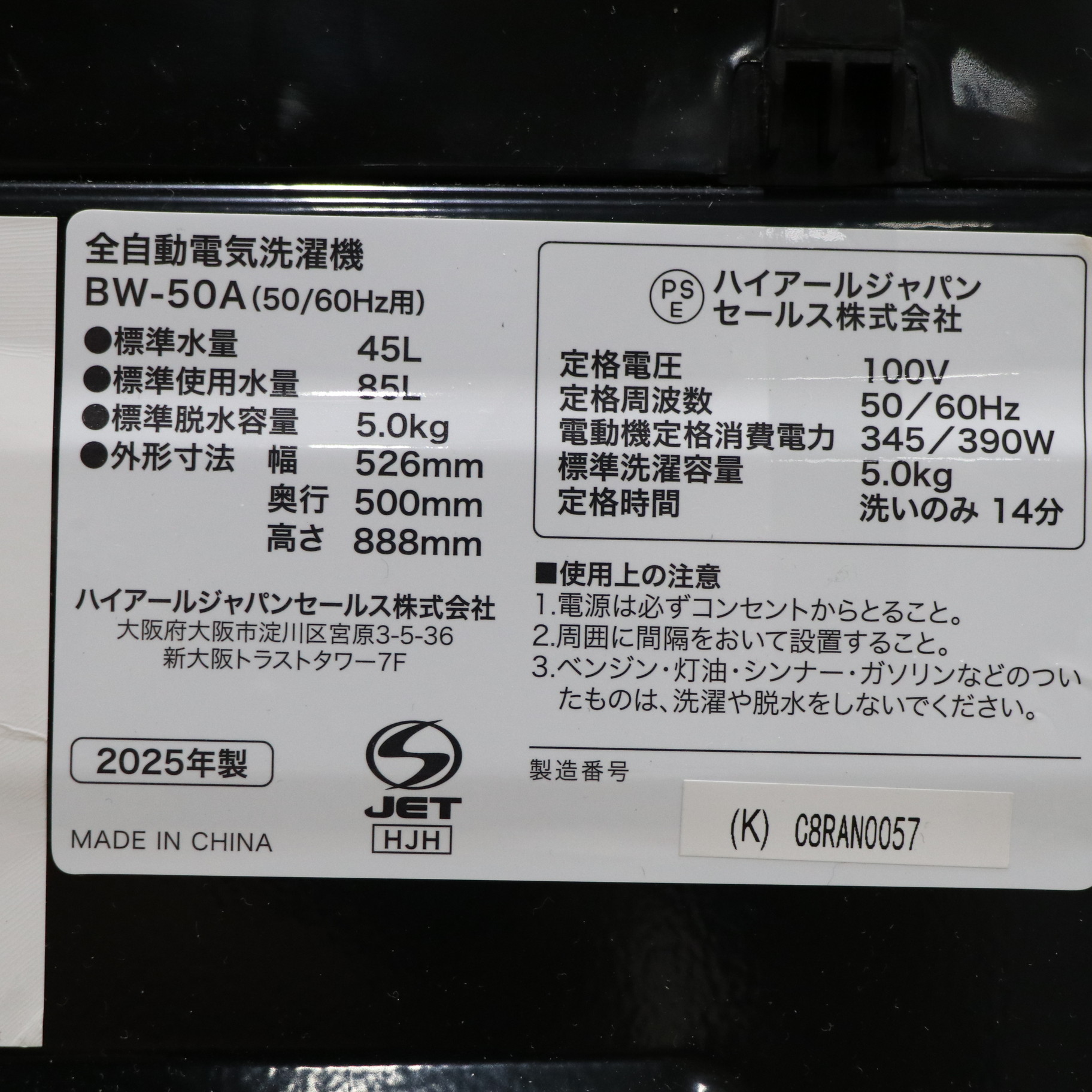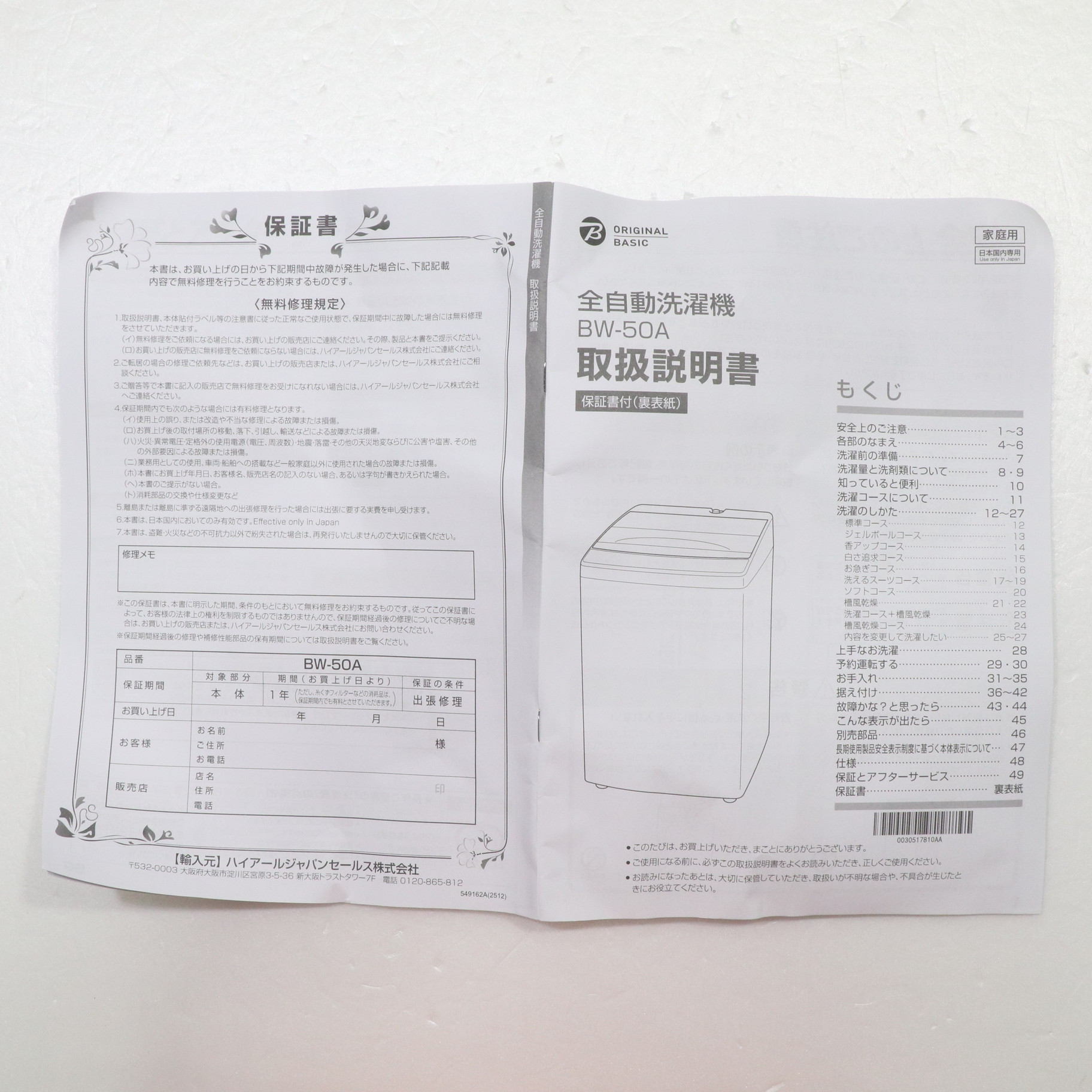 〔展示品〕 全自動洗濯機 ブラック BW-50A-K [洗濯5.0kg /簡易乾燥(送風機能) /上開き]