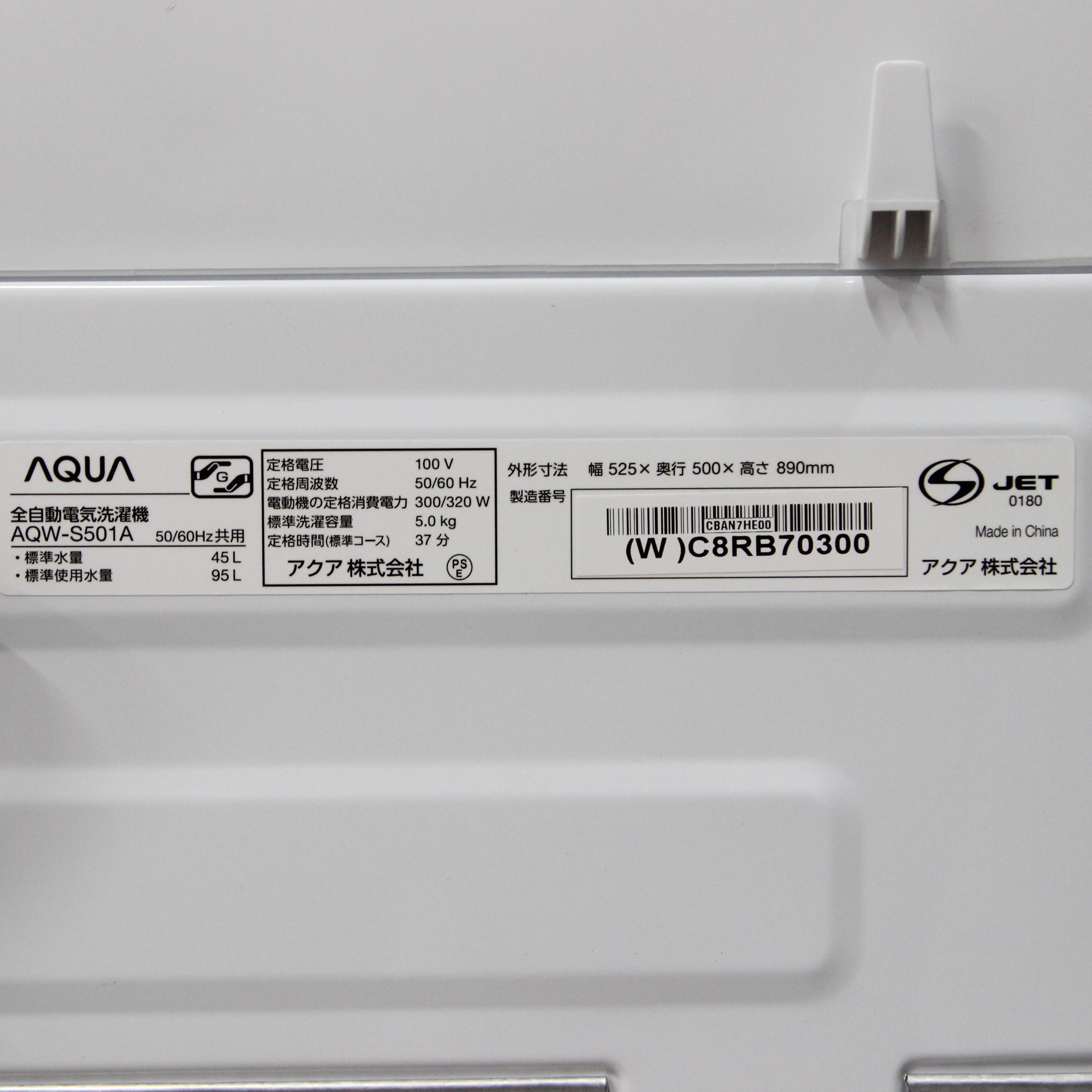 ![AQUA 全自動洗濯機5Kg AQUA ホワイト AQW-S501A(W) [洗濯5.0kg /簡易乾燥(送風機能) /上開き]](https://image.sofmap.com/images/product/large/4582678514431.jpg)