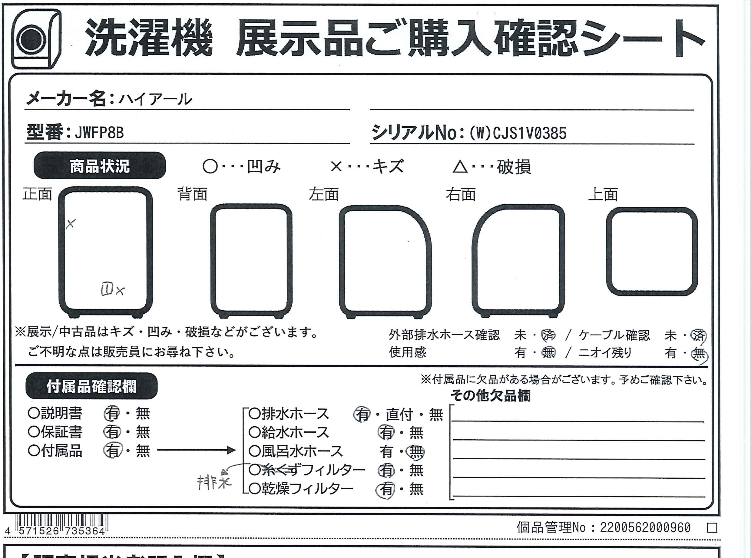 中古商品ランクについて 付属品・商品状態について 〔付属品〕取扱説明書、給水ホース(マジックつぎ手付き)、排水ホース、ストッパー、スパナ、キャップ