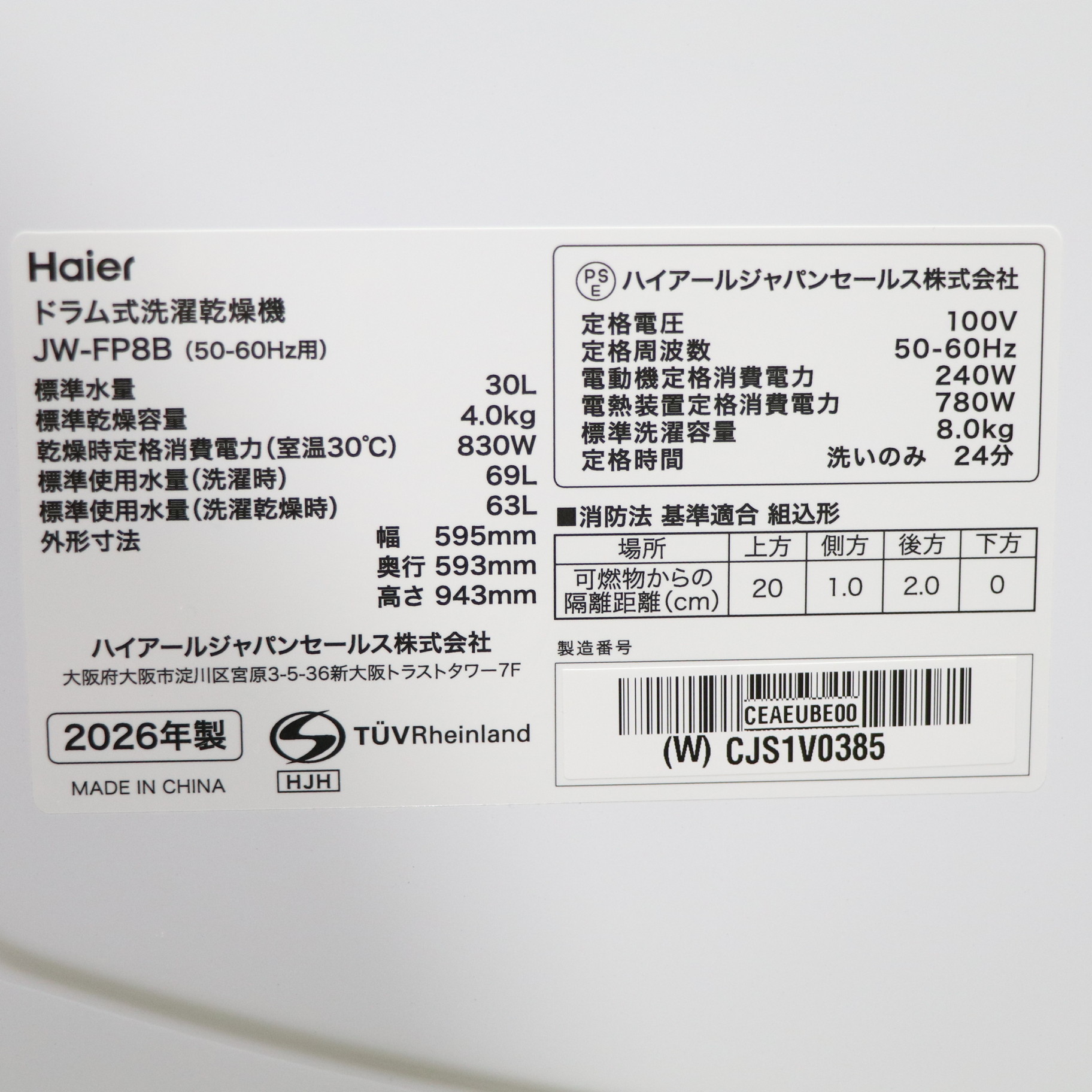 ▼同型番の新品商品はこちら![]() ハイアール ドラム式洗濯乾燥機 DeLAITO(ディライト) ホワイト JW-FP8B-W [洗濯8.0kg /乾燥4.0kg /ヒーター乾燥(水冷・除湿タイプ) /左開き] ¥98,780(税込) 0ポイントサービス 数量限定 |