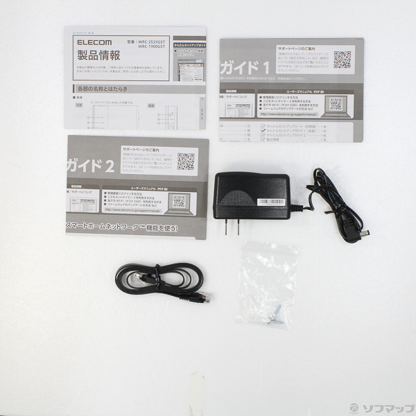 〔付属品〕かんたんセットアップガイド1、かんたんセットアップガイド2、製品情報、かんたんセットアップシート(初期値)、スタンド、ACアダプター、壁掛け設置用ネジ(2本)、LANケーブル(約1m)