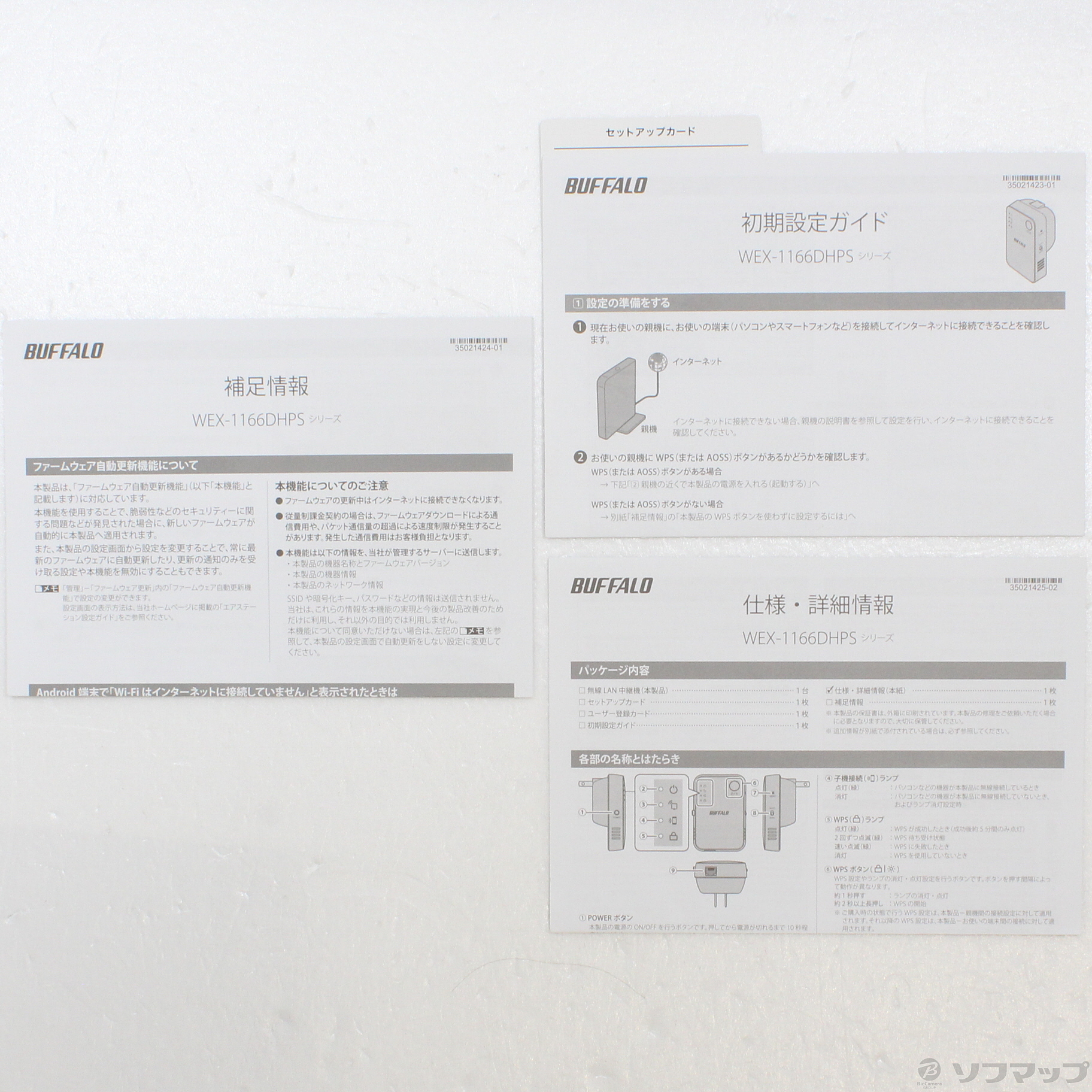 〔付属品〕初期設定ガイド、仕様・詳細情報、補足情報、セットアップカード