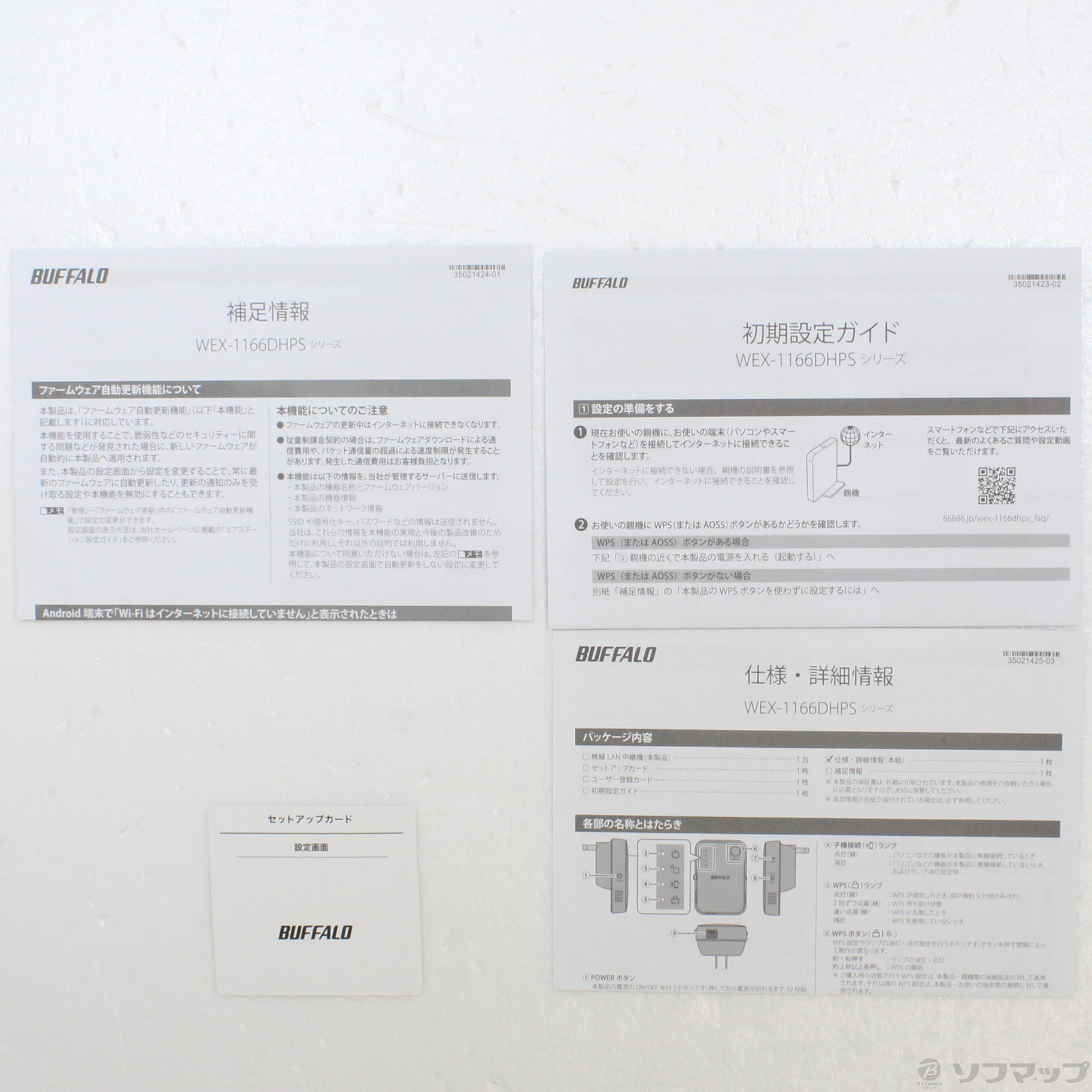 〔付属品〕初期設定ガイド、仕様・詳細情報、補足情報、セットアップカード