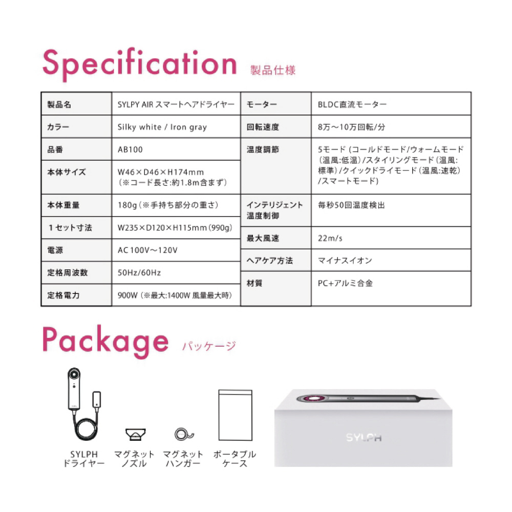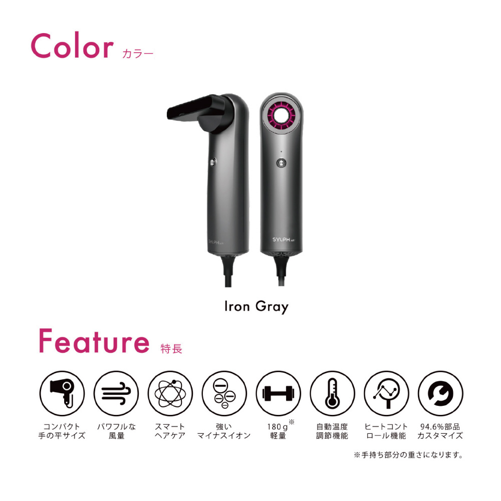 〔展示品〕 スマートヘアードライヤー [国内専用] SYLPH AIR(シルフエアー) Iron gray AB100-GY