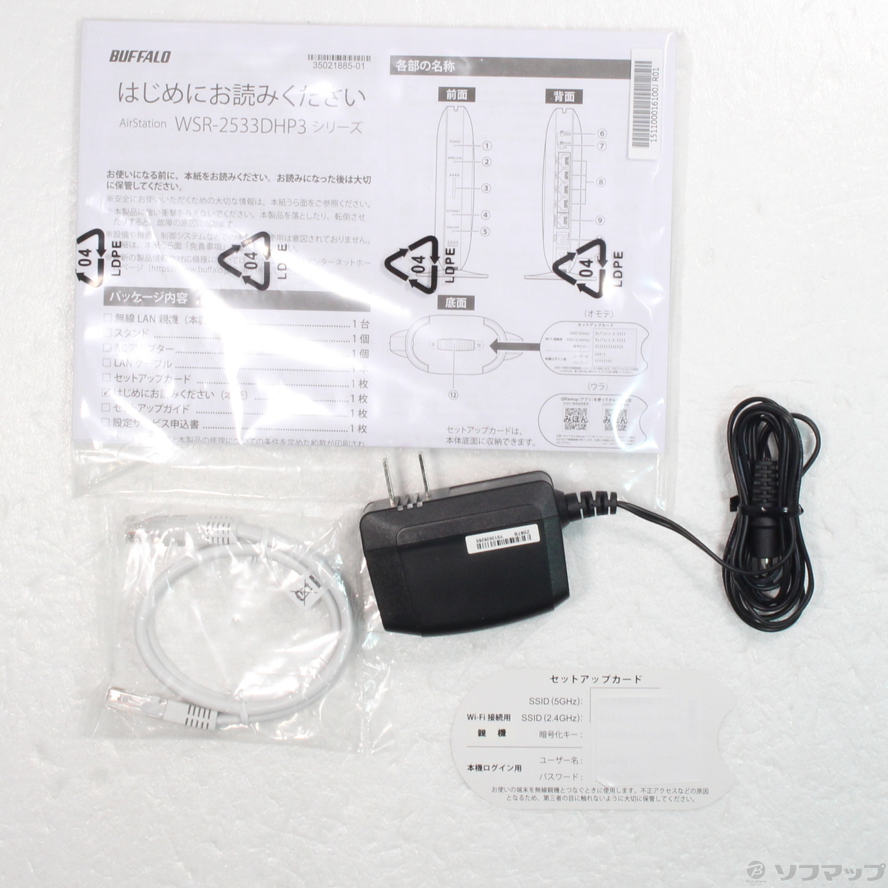 〔付属品〕はじめにお読みください、セットアップガイド、スタンド、ACアダプター、セットアップカード、LANケーブル