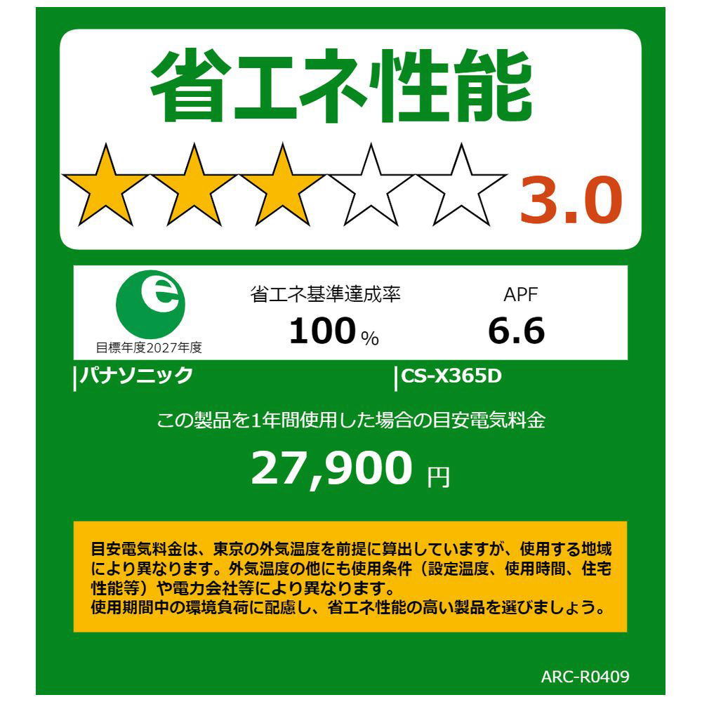 エアコン室内機 CS-X365D-W [100V] (単品購入不可)【プレミアム工事対象】