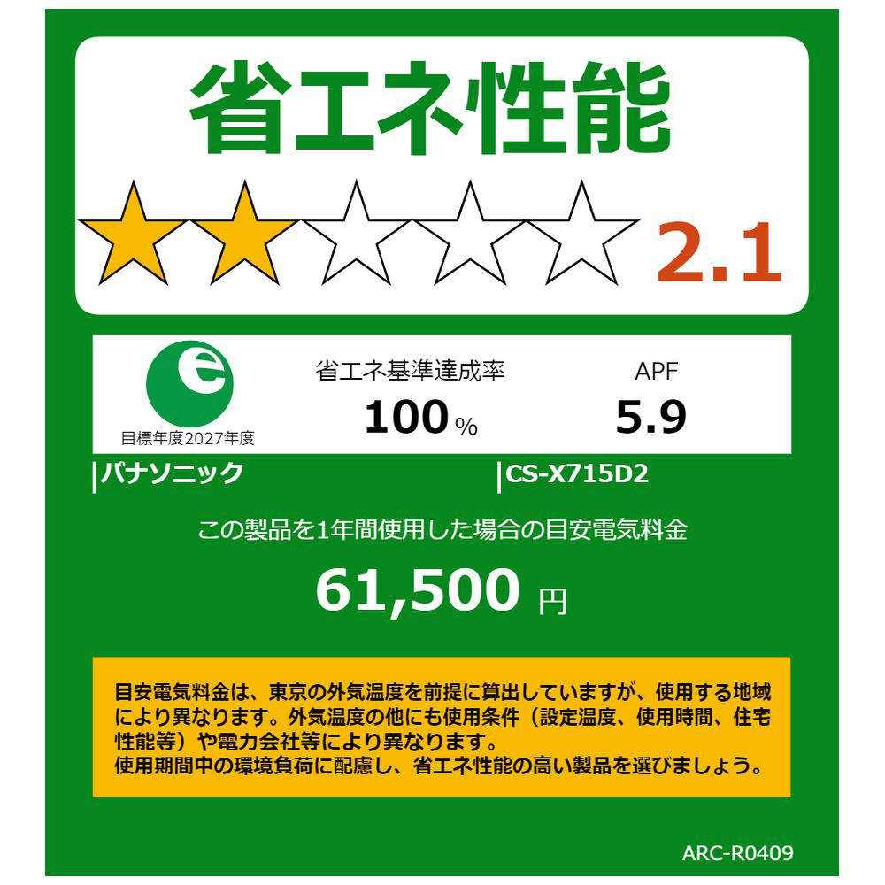 エアコン室内機   CS-X715D2-W [200V] (単品購入不可)【プレミアム工事対象】