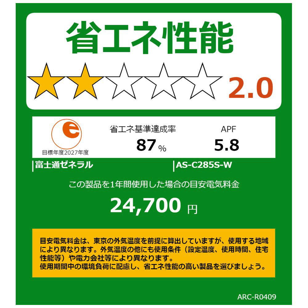 エアコン室内機 AS-C285S-W [100V] (単品購入不可)