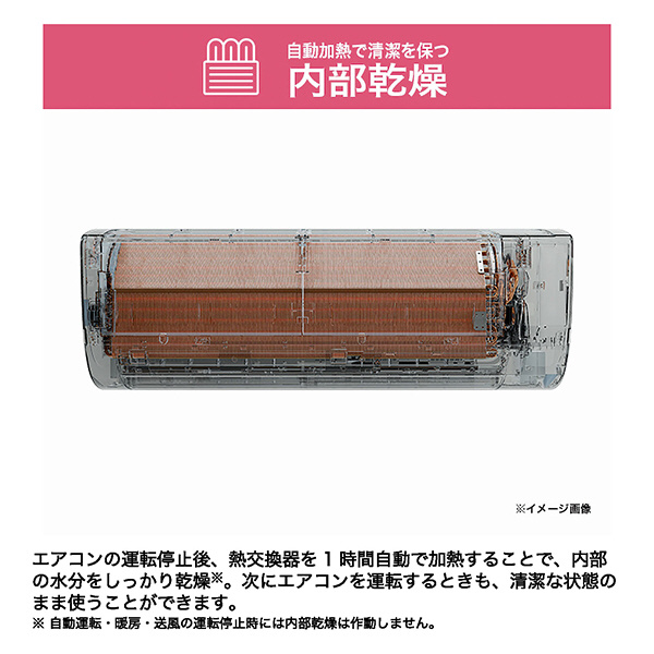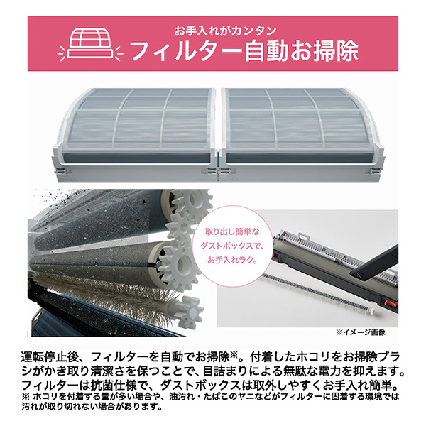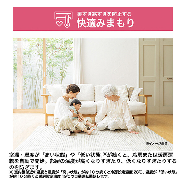 室温みまもり、快適除湿モードで快適環境。フィルター自動お掃除でお手入れかんたん。