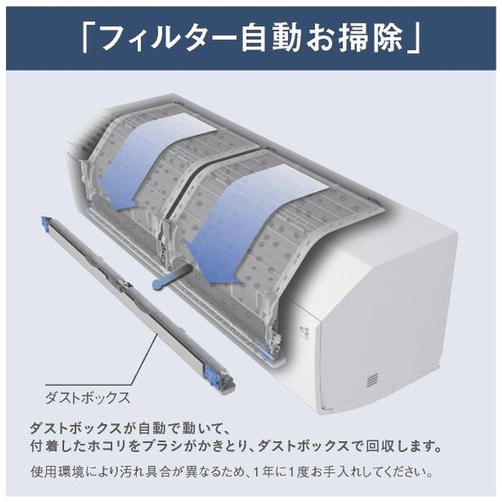 エアコンの運転終了後、自動的にフィルターのホコリをブラッシングして、ダストボックスに回収。フィルターの目詰まりを抑えます。
