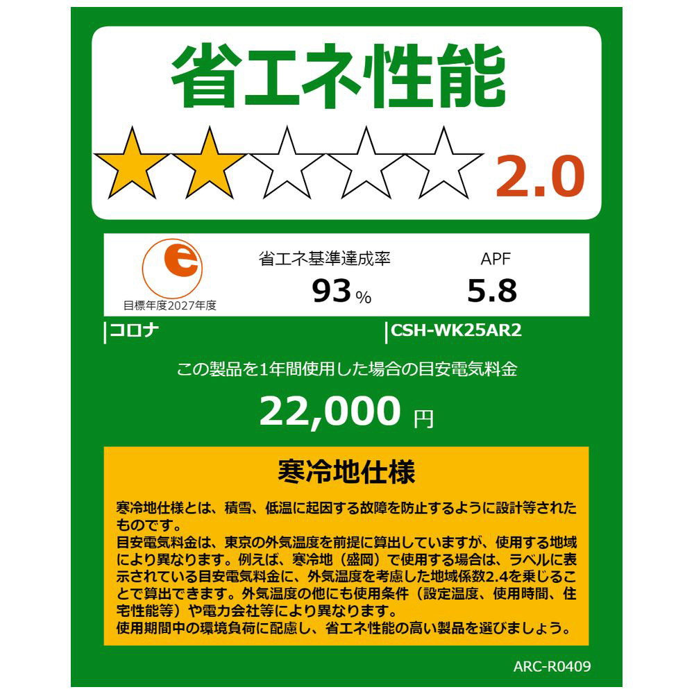 エアコン 2025年 冬暖 Relala(リララ)WKシリーズ ホワイト CSH-WK25AR2-W [おもに8畳用 /200V]