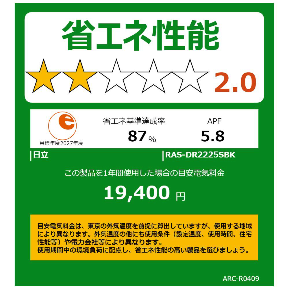 エアコン 2025年 白くまくん DBKシリーズ スターホワイト RAS-DR2225SBK-W [おもに6畳用 /100V]