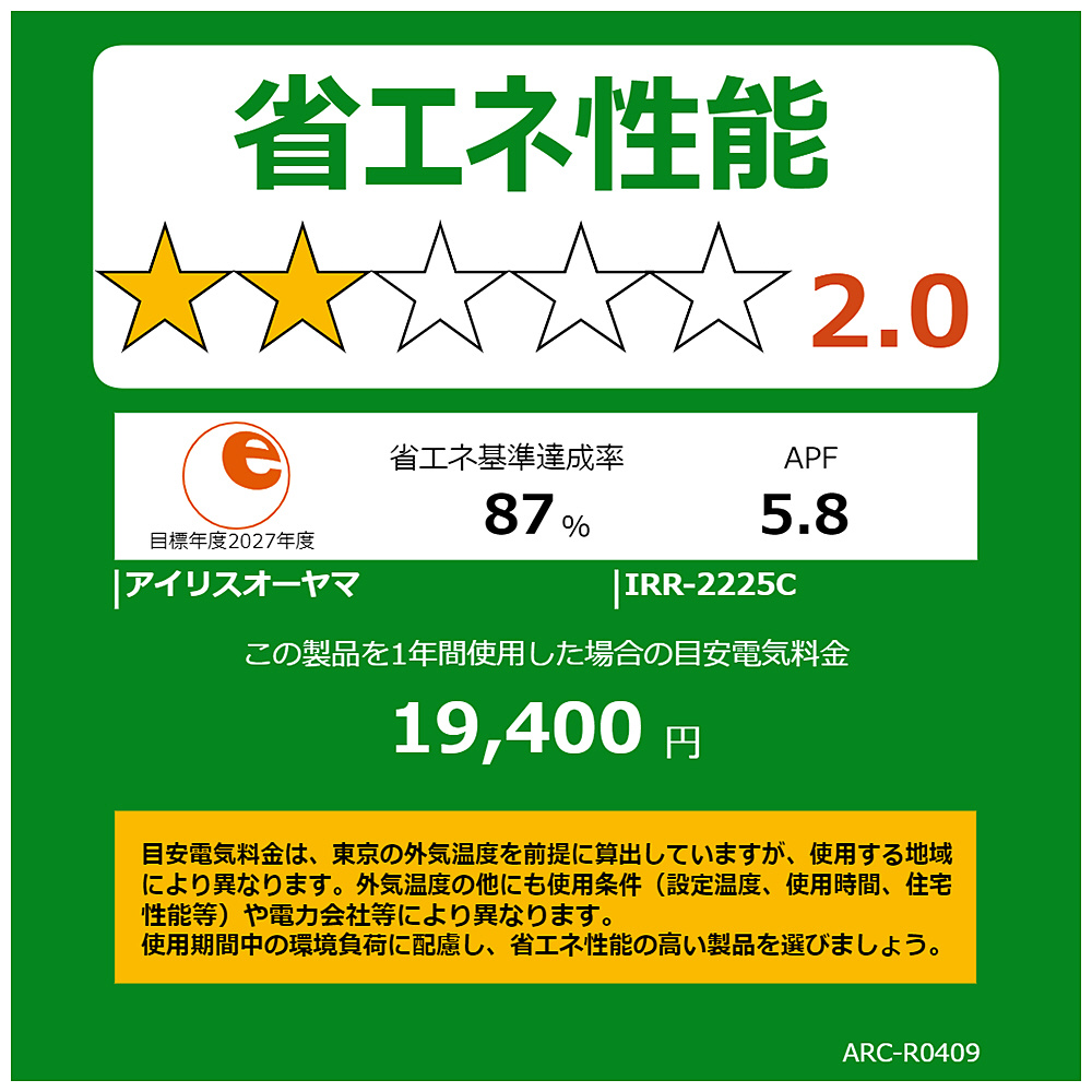 エアコン室内機 IRR-2225C-W [おもに6畳用 /100V]