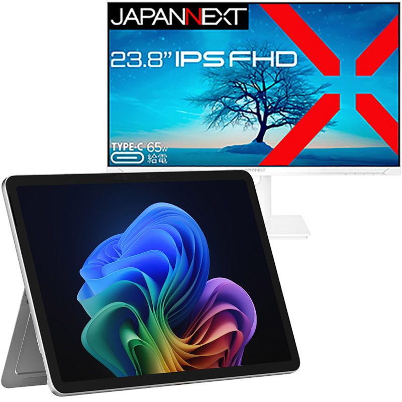 Surface Pro 12 インチ プラチナ EP2-27651 [メモリ:16GB /UFS:256GB]+USB-C接続 PCモニター ホワイト JN-IPS2381FHDR-C65W-HSP-W [23.8型 /フルHD(1920×1080) /ワイド]