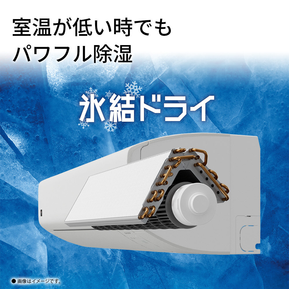 熱交換器の温度を氷点下まで下げることで、従来除湿しにくかった室温が低い時でもパワフルに、快適な除湿を実現します。