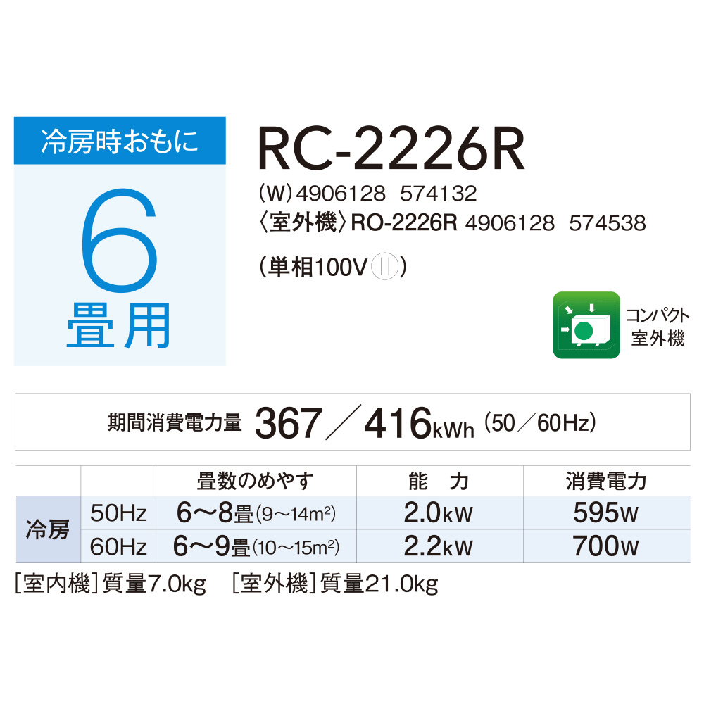 エアコン 2026年 ReLaLa(リララ)冷房専用シリーズ ホワイト RC-2226R-W [おもに6畳用 /100V]