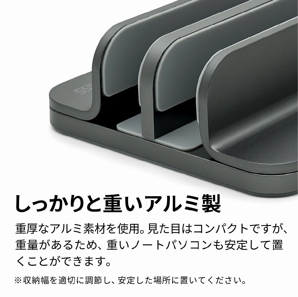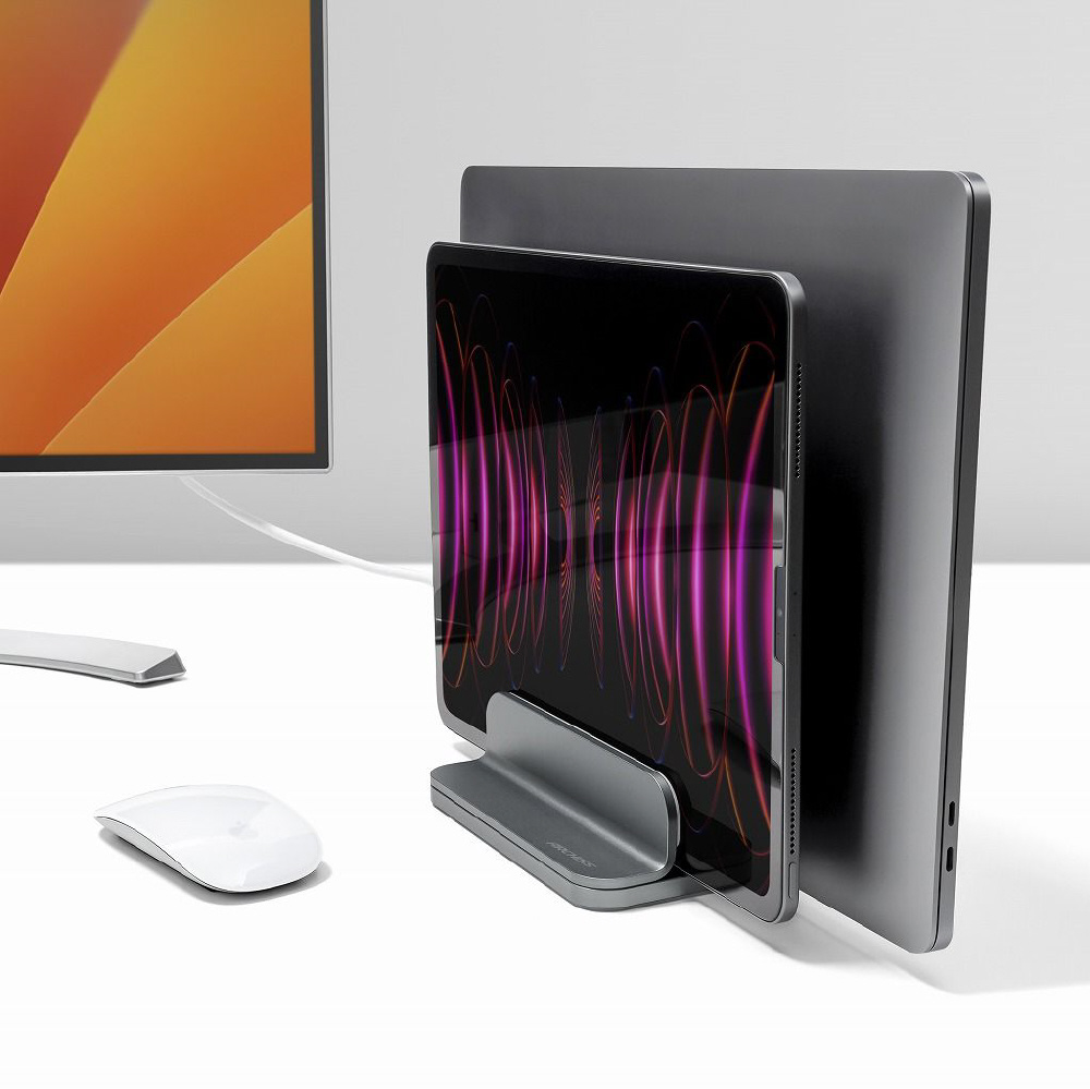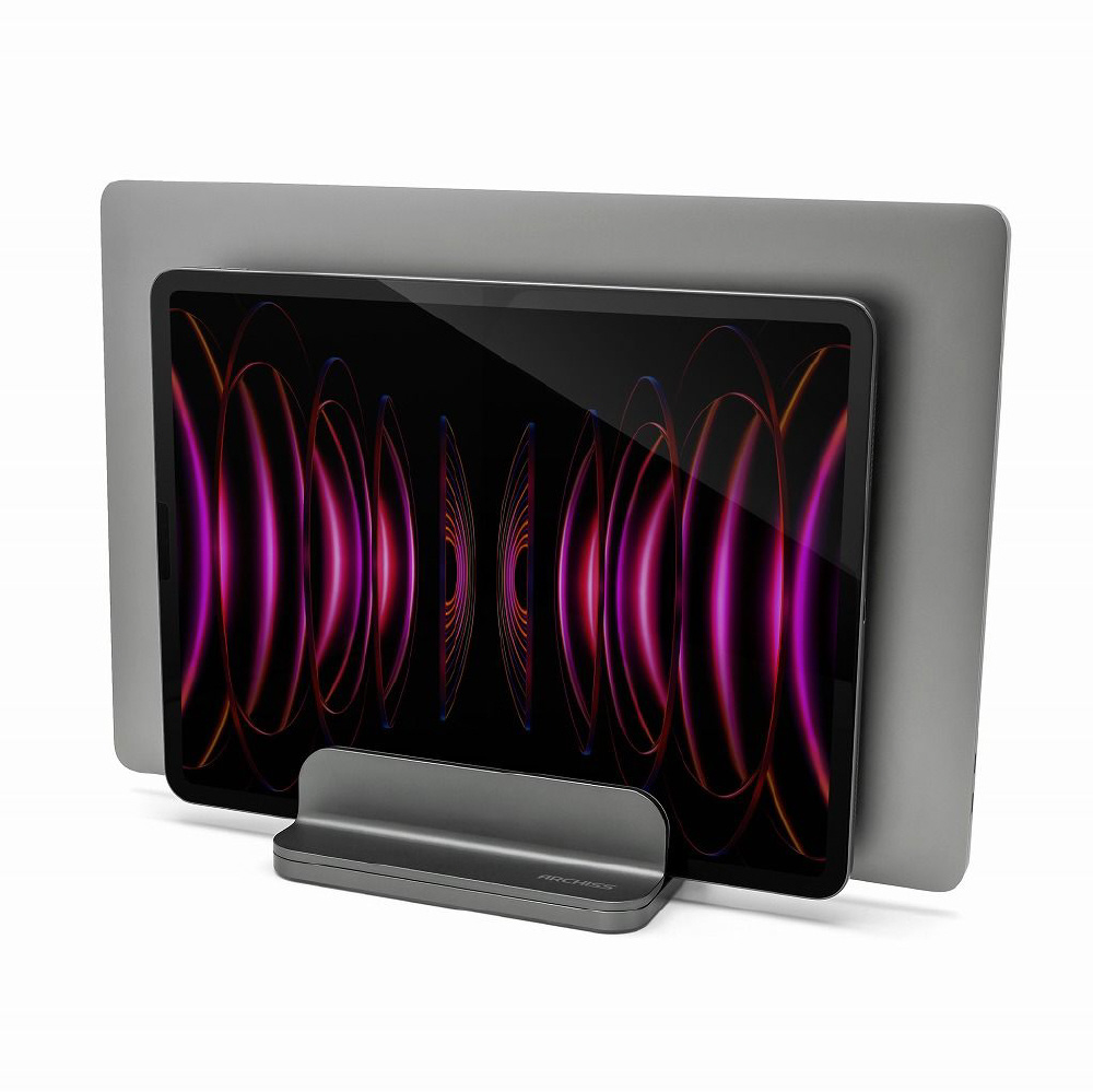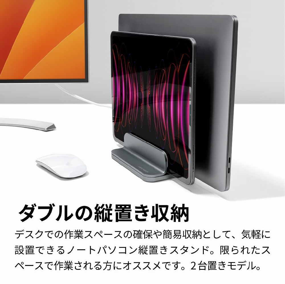ノートパソコン / タブレットPCスタンド[10〜16インチ 2台収納] 縦置き UPRIGHT-STAND BY ME 2 DOUBLE スペースグレイ AS-URBM2-DG
