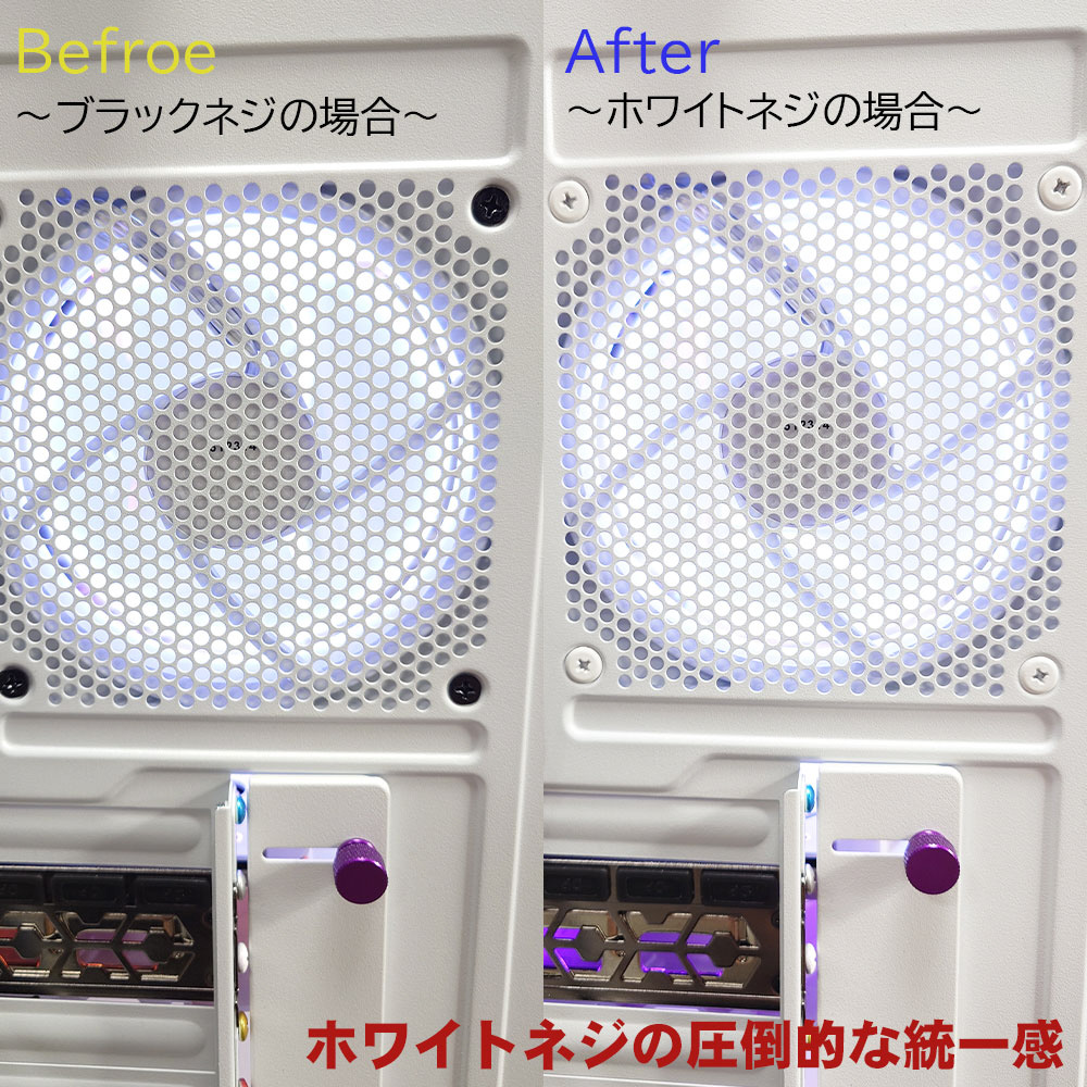 人気のホワイトケースにぴったりのPCファン固定用テーパーネジ ロングタイプ ホワイト 6本入りです。