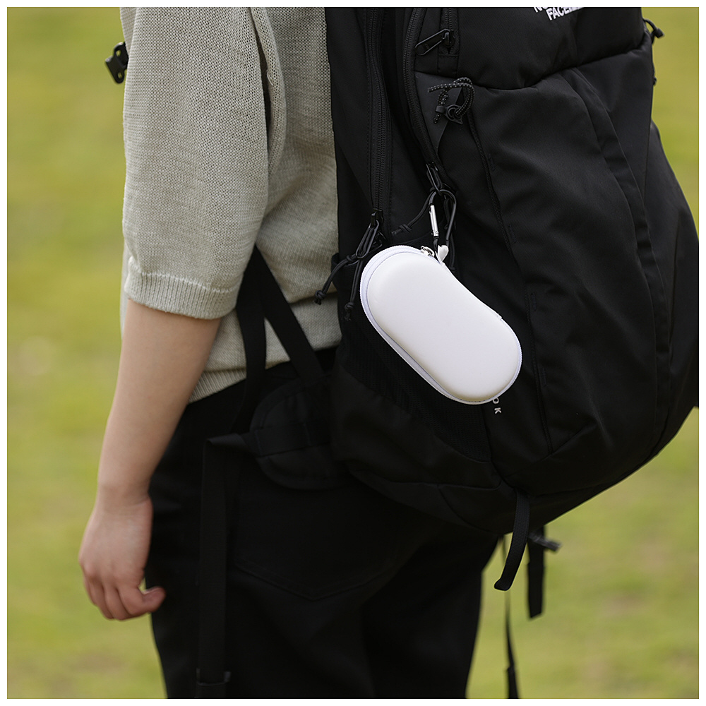 くるくるネックファン 充電式 収納ポーチ カラビナ付 ホワイト YNG-KRNF160-WH