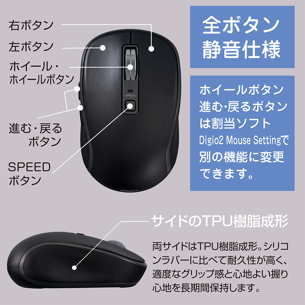 「Bluetooth静音5ボタンBlueLEDマウス」