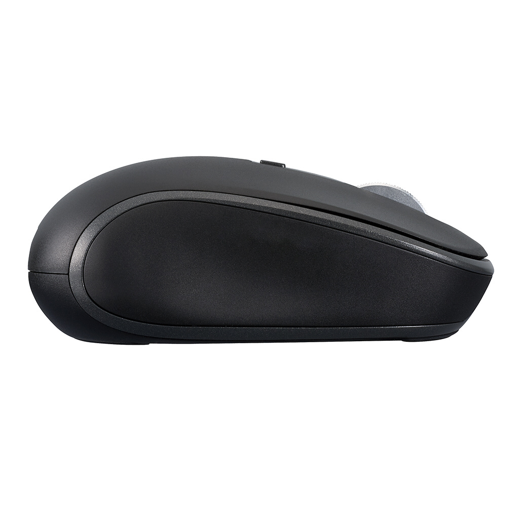 小さめの握りやすいカタチ。アルミホイールが心地よい静音マウス。