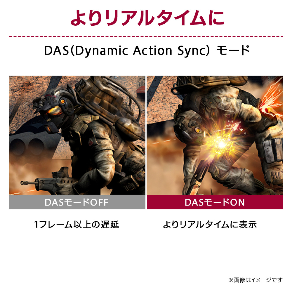 『DASモード(自動設定)』は、本来映像を画面に出力する際に一度格納される「フレームバッファ」を通さず映像をダイレクトに出力することで、遅延を抑えます。
