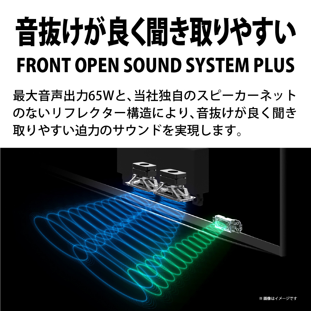 最大音声出力65Wと、シャープ独自のスピーカーネットのないリフレクター構造により、音抜けが良く聞き取りやすい迫力のサウンドを実現します。