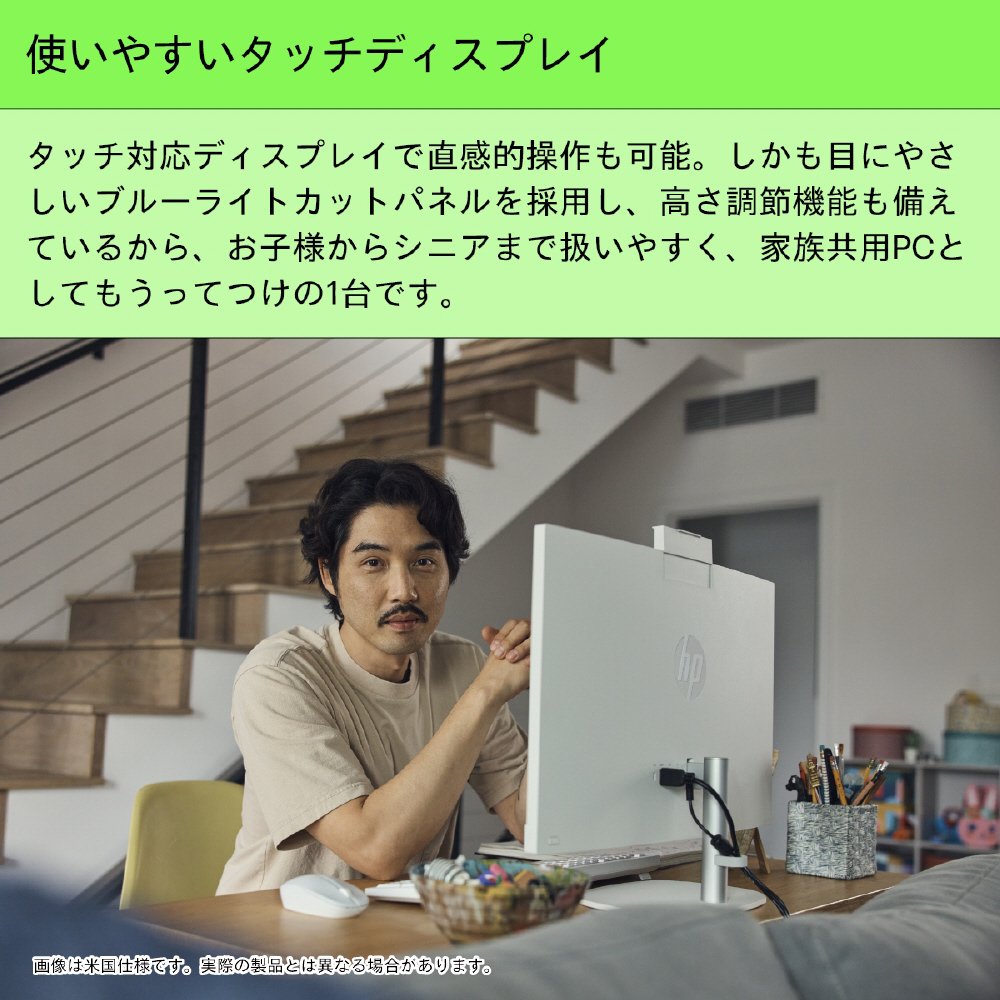 タッチ対応ディスプレイで直感的操作も可能。しかも目にやさしいブルーライトカットパネルを採用し、高さ調節機能も備えているから、お子様からシニアまで扱いやすく、家族教養PCとしてもうってつけの1台です。