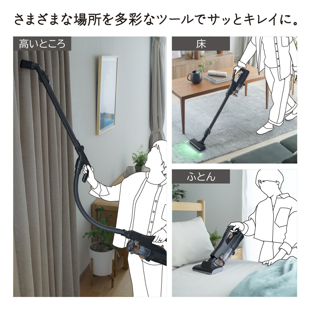 ●前と左右のごみを照らす「3方向ごみくっきりライト」