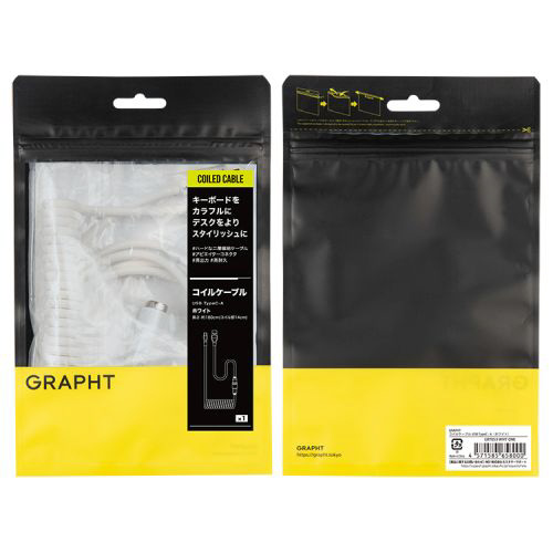 商品名 キーボードケーブル [USB-C ⇔ USB-A(PC側) /0.34+1.5m] コイルケーブル ホワイト GRT053-WHT-ONE