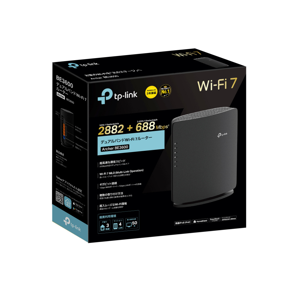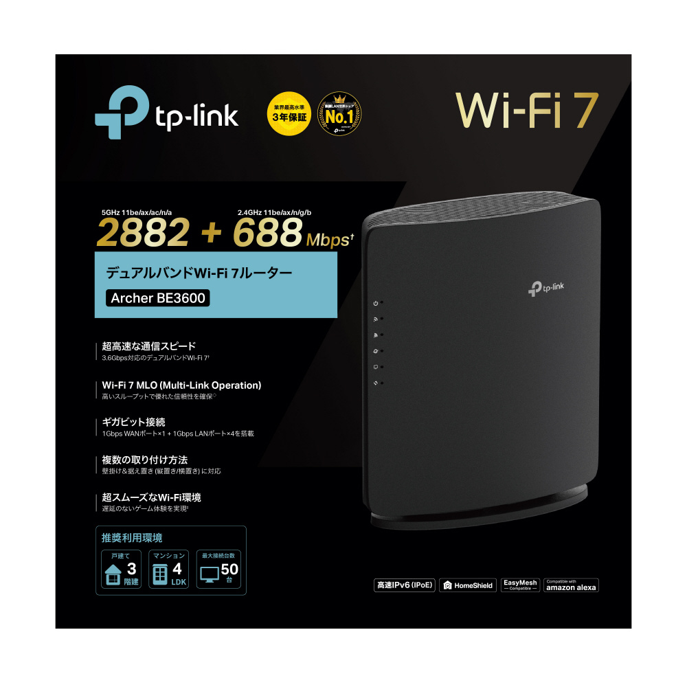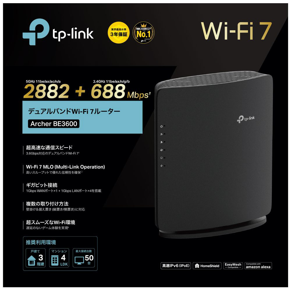 Wi-Fiルーター 2882+688Mbps Archer BE3600 [Wi-Fi 7(be) /IPv6対応]