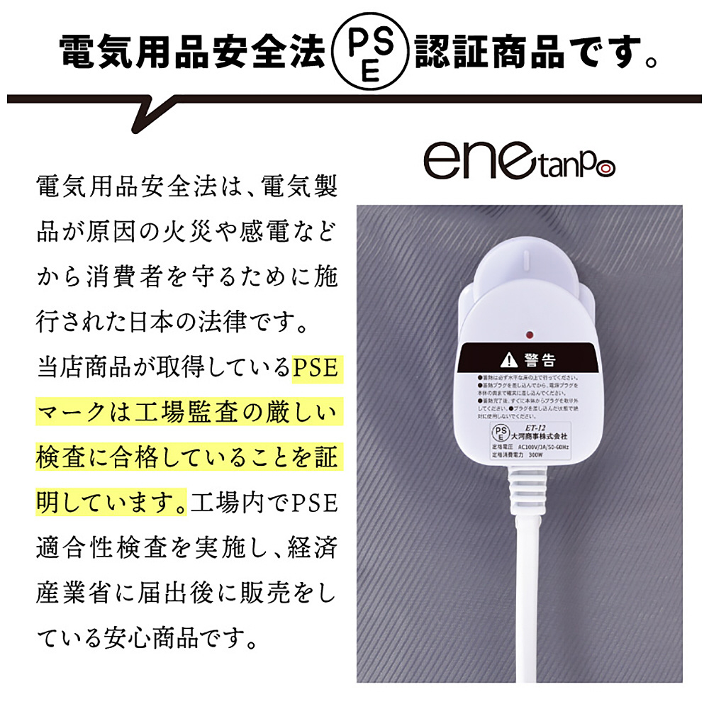 ●加熱防止機能が付いているので、安全性にも配慮。日本経済産業省、製品安全課規定によるPSEマーク取得済み。