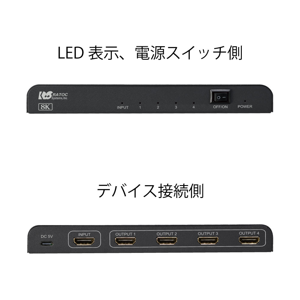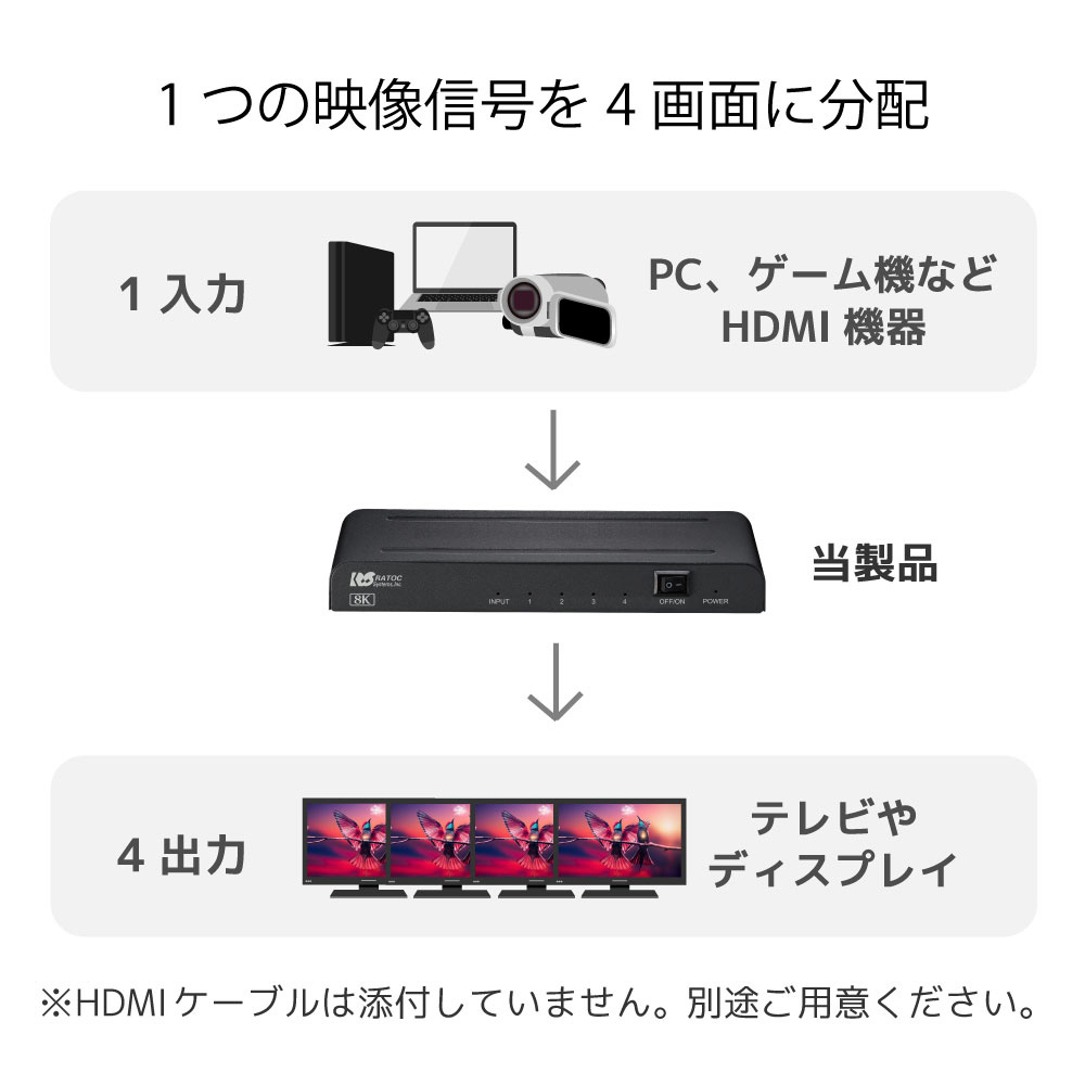 | 商品名 | 8K対応 1入力4出力 HDMI分配器 RS-HDSP4-8K |