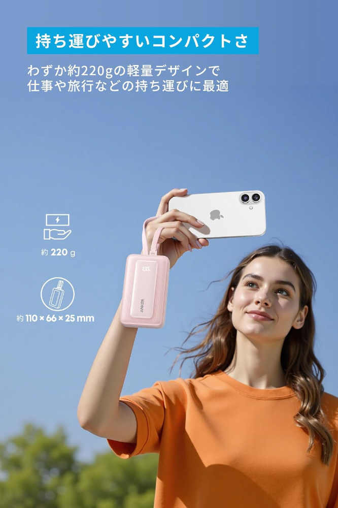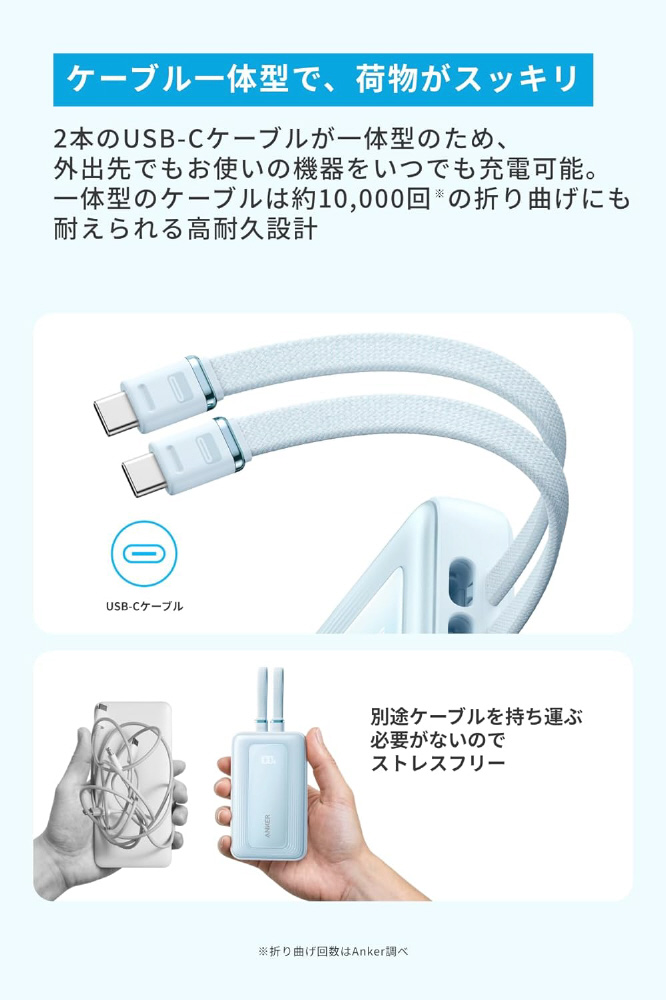 ケーブル一体型の大容量モバイルバッテリー