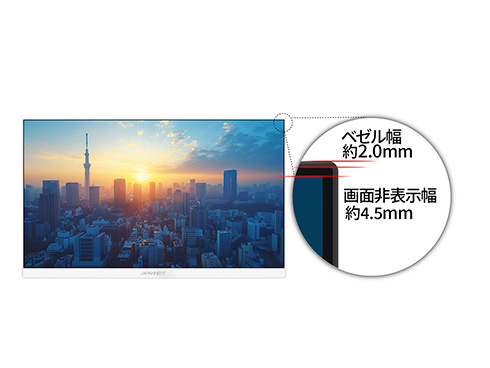 21.5インチの液晶モニターはコンパクトながらノートPCの拡張画面として快適に使■用でき、テレワークなどにも使いやすいエントリーモデルです。