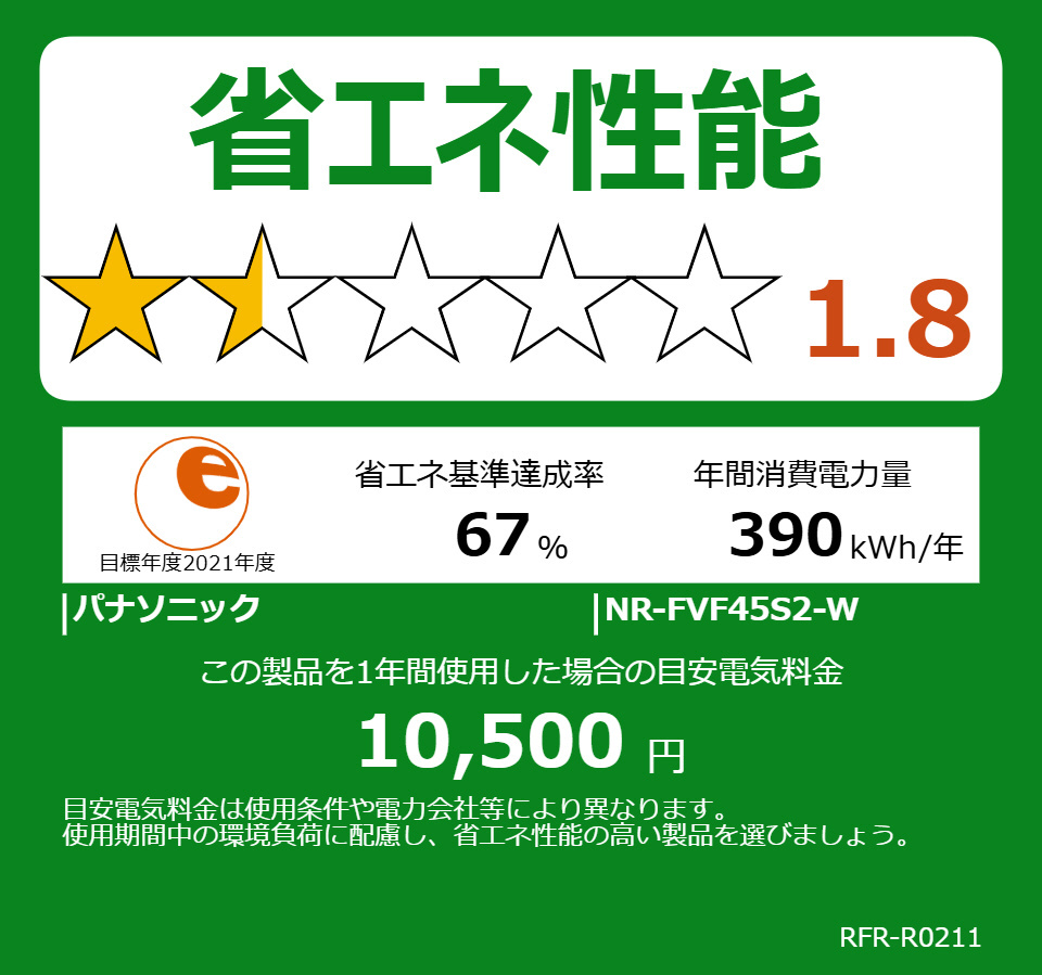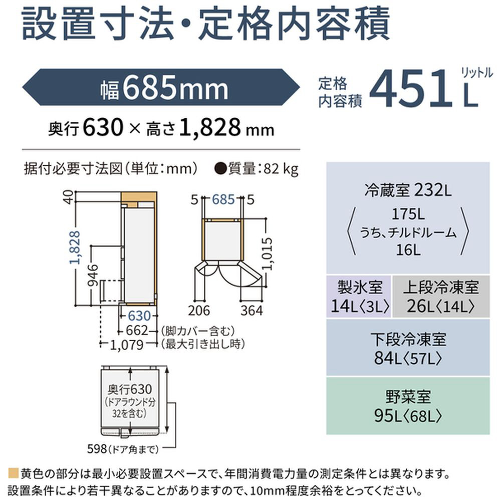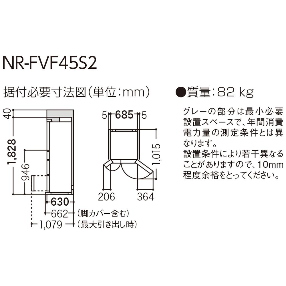 冷蔵庫 FVFタイプ ハーモニーホワイト NR-FVF45S2-W [幅68.5cm /451L /6ドア /観音開きタイプ /2025年]【生産完了品】【基本設置料金セット】