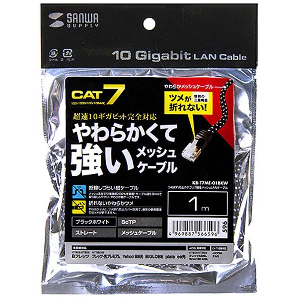 | 商品名 | KB-T7ME-01BKW カテゴリー7・10ギガビットイーサネット対応 LANケーブル (1m/ブラック&ホワイト) |