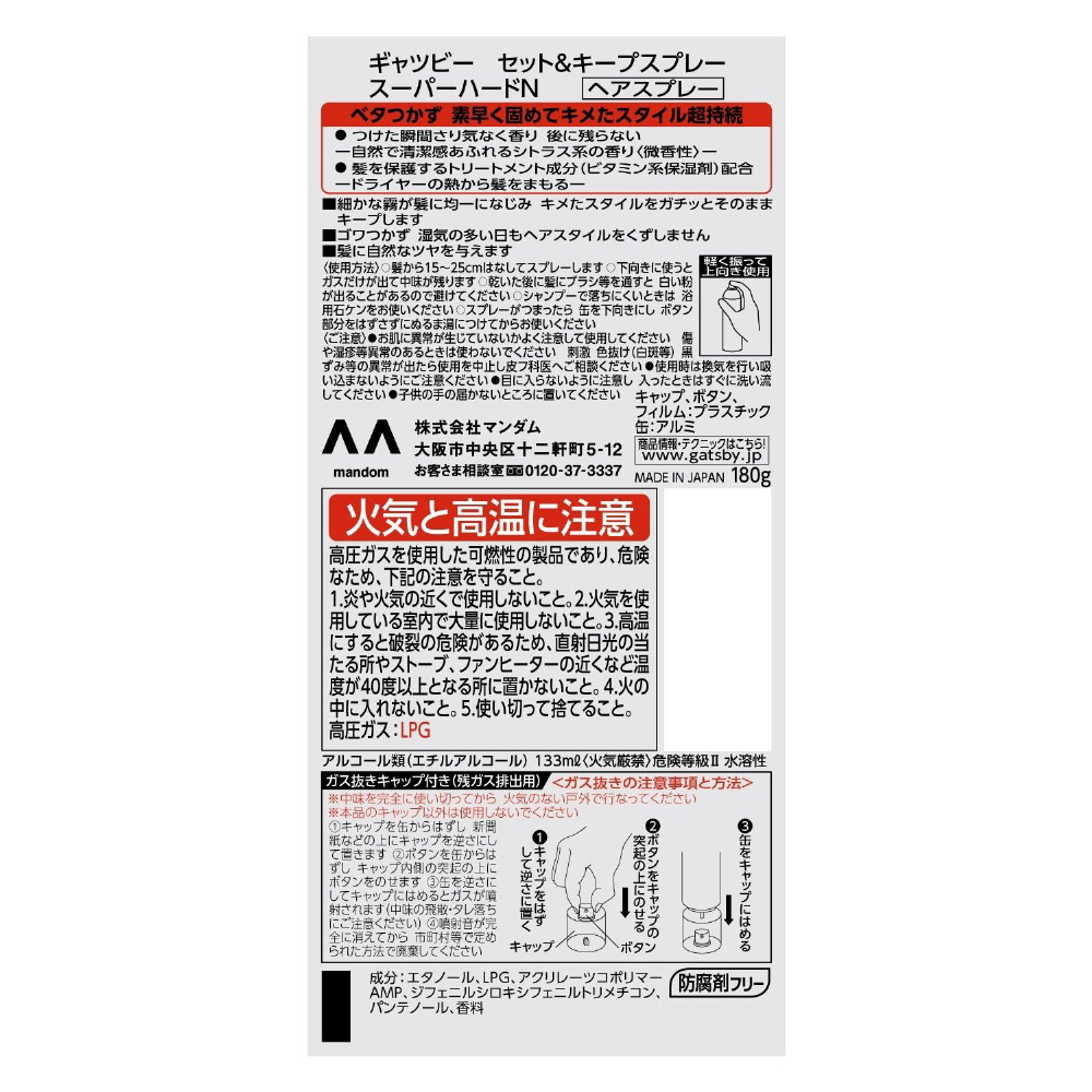 【GATSBY(ギャツビー)】セット&キープスプレースーパーハード(180g)〔ヘアスプレー〕