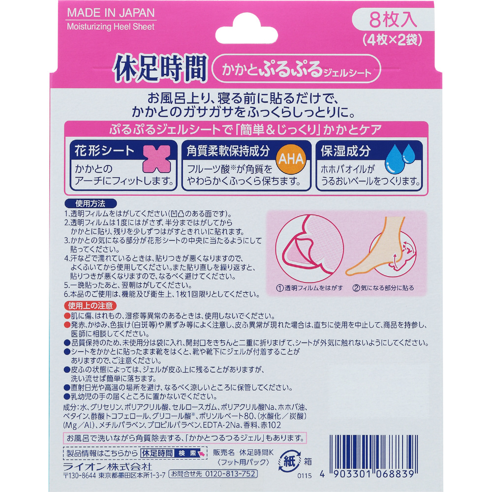 商品名 休足時間 かかとぷるぷるジェルシート 8枚入