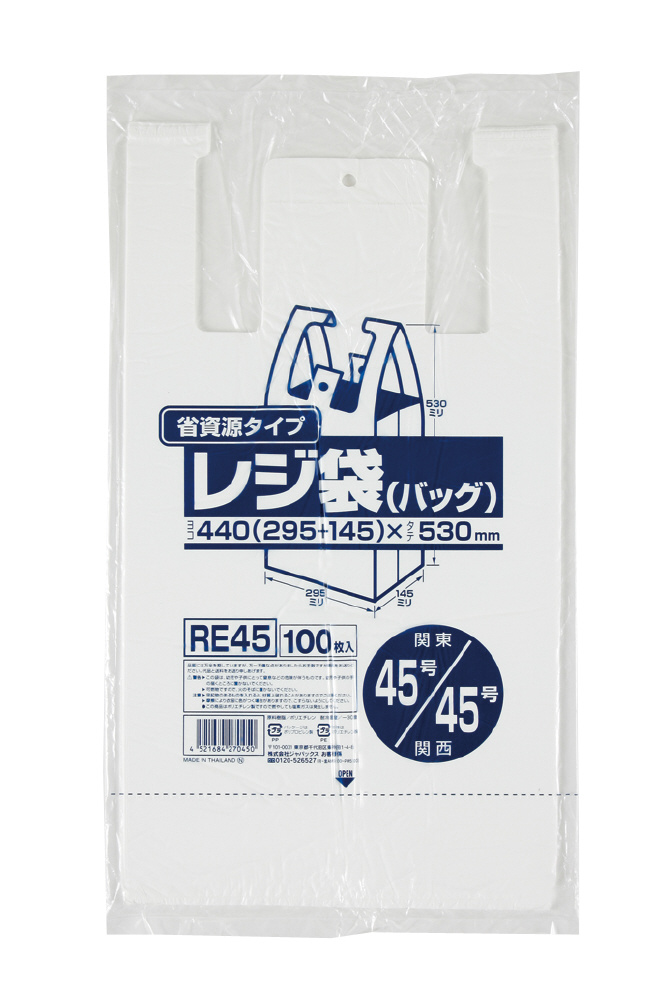 | 商品名 | 業務用省資源タイプ レジ袋(100枚入) RE45 45号/45号 乳白 <XLZ3506> |