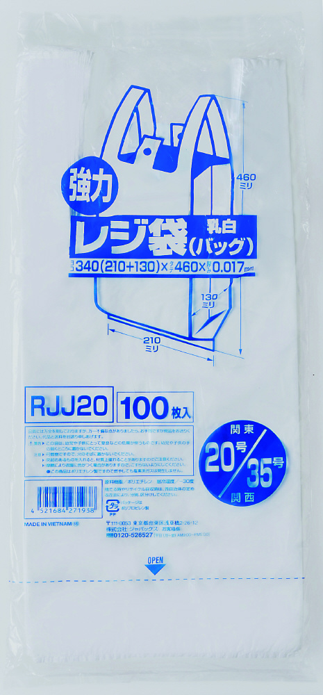 | 商品名 | 業務用強力レジ袋(100枚入)(乳白色) RJJ-20 20号 <XLZ4404> |