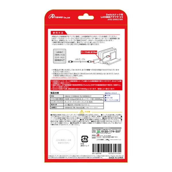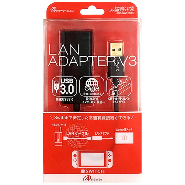 | 商品名 | Switchドック用 LAN接続アダプタ V3 ブラック [ANS-SW021BK] |