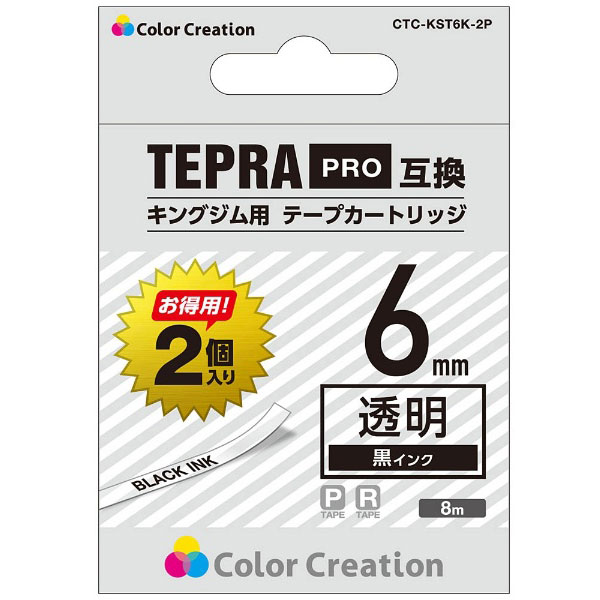 | 商品名 | テプラ(TEPRA)PRO用互換テープ (透明テープ/黒文字/6mm幅/8m)2個パック CTC-KST6K-2P |