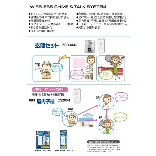 お部屋同士で会話ができる、配線不要のドアホン・インターホンです。
