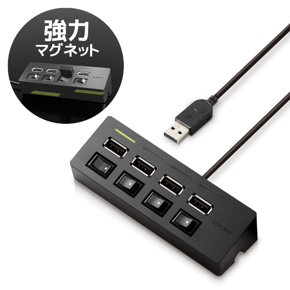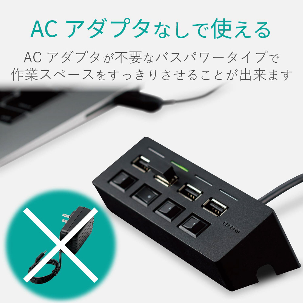 USB2.0/個別スイッチ付/バスパワー/4ポート/100cm/ブラック U2H-TZS428BXBK