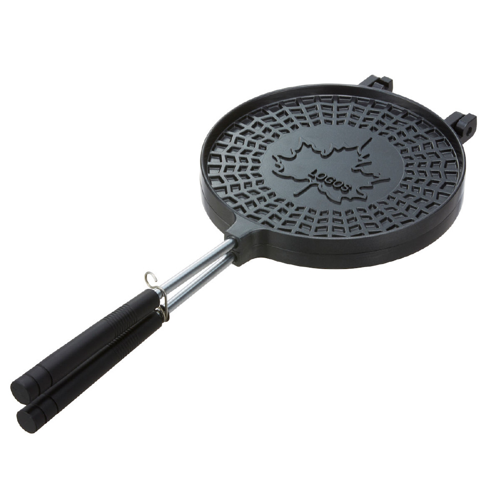 ロゴスのトレードマークであるメイプルリーフ模様のオリジナルゴーフレットが焼けます。