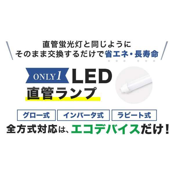 エコデバイスLED直管ランプは点灯方式に関係なくそのまま取り換えるだけで点灯できます。