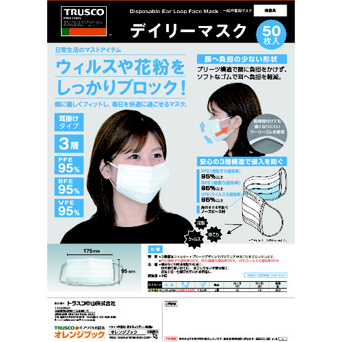 | 商品名 | TRUSCO デイリーマスク(耳掛けタイプ)3層(50枚入) |