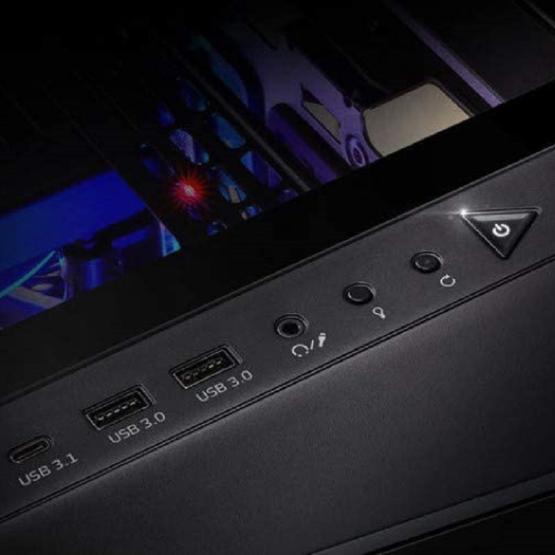 前面入力端子 I/Oポート:Type C Gen1ポート×1、USB 3.0ポートx 2、HD オーディオ/マイクx 1、電源ボタン、LEDコントロールボタン